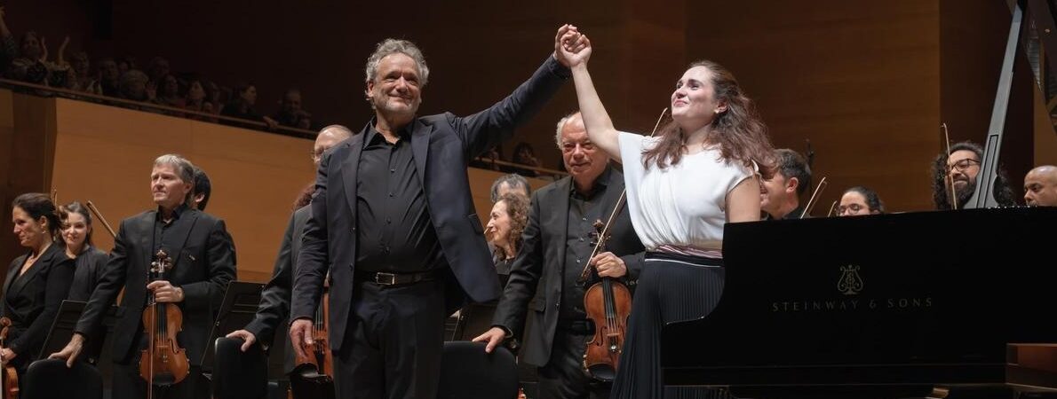Enmig de Berlioz, el Concert per a la mà esquerra de Maurice Ravel va trobar en Anna Vinnitskaya una intèrpret d’intensa personalitat, capaç d’imposar des del primer moment una lectura ambiciosa i coherent. Ja en el misteriós crescendo orquestral que precedeix l’entrada del solista —resolt per l’orquestra amb una sonoritat punyent i intensa, potser excessiva en volum per als oients més puristes, però indubtablement carregada de caràcter— es dibuixava un marc dramàtic d’alta tensió expressiva. L’entrada del piano va confirmar una concepció vehement i apassionada de l’obra. Vinnitskaya va desplegar una paleta tímbrica riquíssima, sostinguda per una tècnica d’una solidesa incontestable: articulació claríssima, legato precís i un ús del pedal tan rigorós com eficaç, sempre al servei de la transparència del discurs. La seva lectura va saber conjugar els passatges més abruptes i percutits amb episodis d’una diafanitat gairebé prístina, fent tangible l’ideal ravelià d’una escriptura que ha de suggerir la plenitud de les dues mans. La sonoritat poderosa, l’elegància del fraseig i l’absoluta seguretat en els acords desplegats —així com en els salts d’octava i els glissandi— van reforçar la impressió d’un domini tècnic total, mai desvinculat del sentit musical. El diàleg amb l’orquestra va funcionar amb complicitat real i corroborant als bisos que el seu és un pianisme d’alt nivell tècnic i d’ambició expressiva.